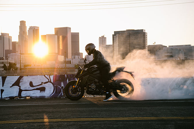 Testing includes energy attenuation, penetration resistance, chin strap structural integrity, and labeling requirements for on-road motorcycle helmets.