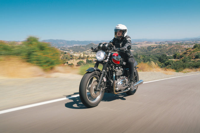 Testing includes energy attenuation, penetration resistance, chin strap structural integrity, and labeling requirements for on-road motorcycle helmets.