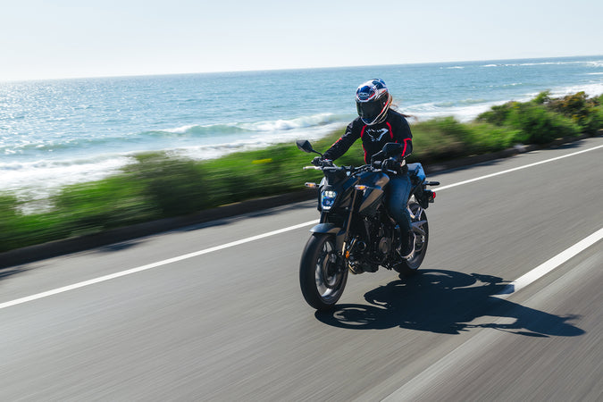 Testing includes energy attenuation, penetration resistance, chin strap structural integrity, and labeling requirements for on-road motorcycle helmets.